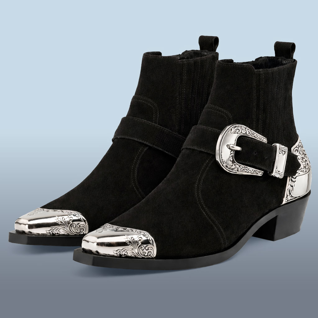 And finally... A pair of obnoxious black velvet boots with elaborate silver tips, heels, and buckles (#foreshadowing).